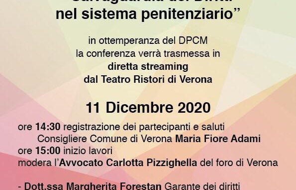 L’evento è organizzato dall’Associazione Intreccio e dal progetto Serena Onlus e vedrà la partecipazione del Consigliere del Comune di Verona Maria Fiore Adami, della Garante dei diritti dei detenuti del Comune di Verona Dott.ssa Margherita Forestan, dell’Avvocato Penalista del Foro di Verona Elena Pranio, del Garante regionale della Campania Dott. Samuele Ciambriello e della Prof.ssa Fiano Maria, docente CPIA, in distacco presso l’Ufficio Scolastico Regionale del Veneto.