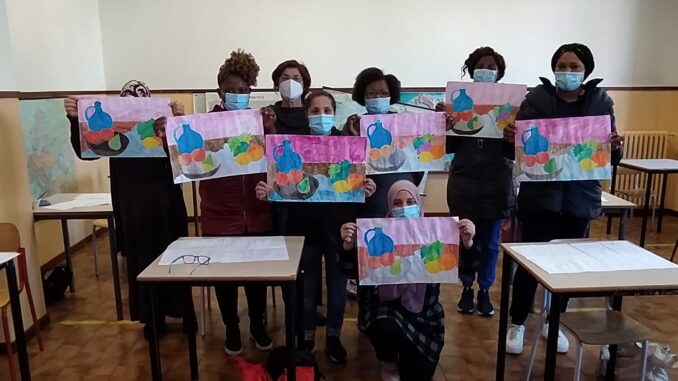 Ecco una delle attività “pratiche” per imparare la lingua italiana: “I colori e gli oggetti”, svolta dalla docente Lonardi Chiara con le studentesse di Veronetta.