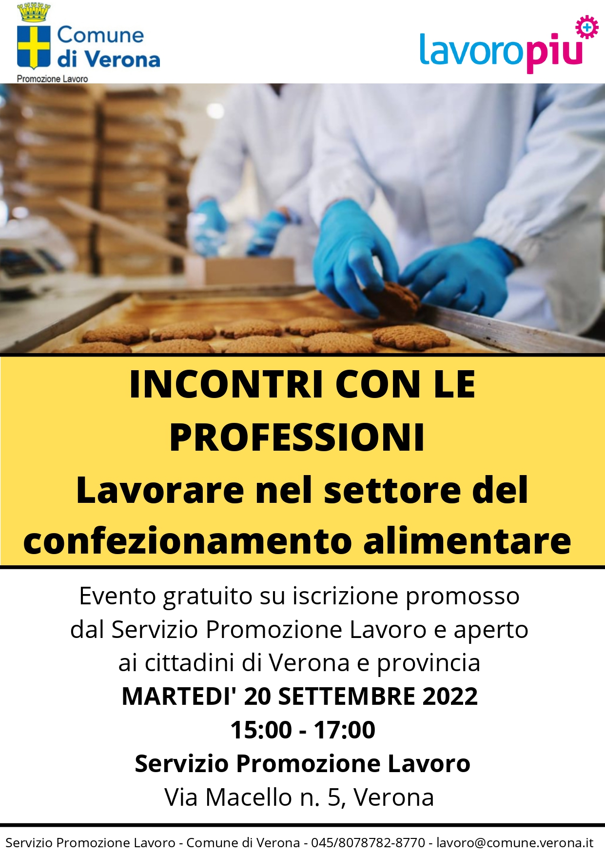 Martedì 20 settembre dalle ore 15.00 alle ore 17.00, presso Servizio Promozione Lavoro e in collaborazione con l’Agenzia Lavoropiù, avrà luogo l’incontro “Lavorare nel settore del confezionamento alimentare”