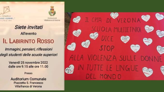 Il 25 novembre, Giornata internazionale per l’eliminazione della violenza sulle donne istituita dall’Assemblea generale delle Nazioni Unite, gli studenti della Sede Associata di Villafranca, sono intervenuti all’evento IL LABIRINTO ROSSO, presso l’Auditorium Comunale di Villafranca.