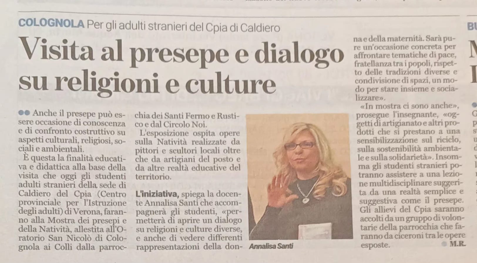 Oggetto della visita la mostra d’arte dei presepi di Colognola ai Colli e la rappresentazione della donna simbolo di pace.