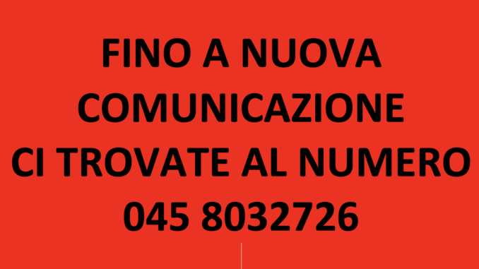A seguito di ritardi nel trasloco della linea telefonica gli uffici amministrativi sono reperibili al numero 0458032726.